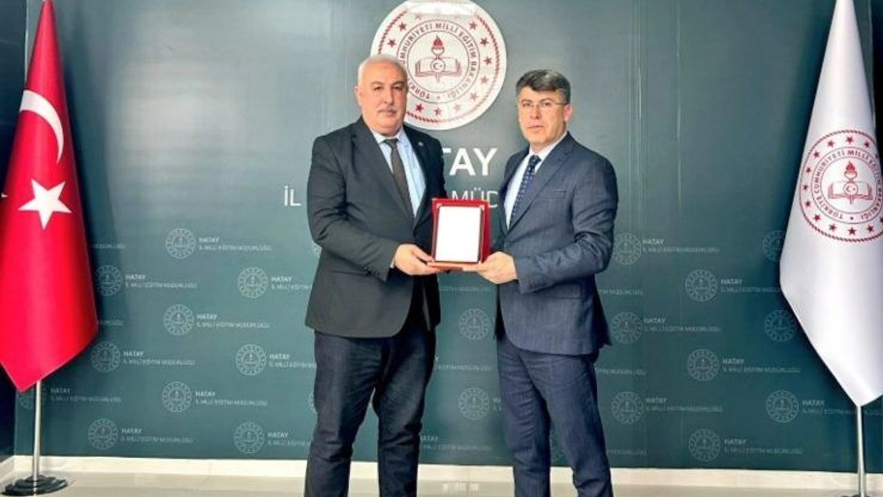 Yeşilay Haftası münasebetiyle Antakya Yeşilay Cemiyeti Başkanı İbrahim Kuyubaşıoğlu ve beraberindeki heyet, Hatay İl Milli Eğitim Müdürü Dr. Harun Tüysüz’ü makamında ziyaret etti.